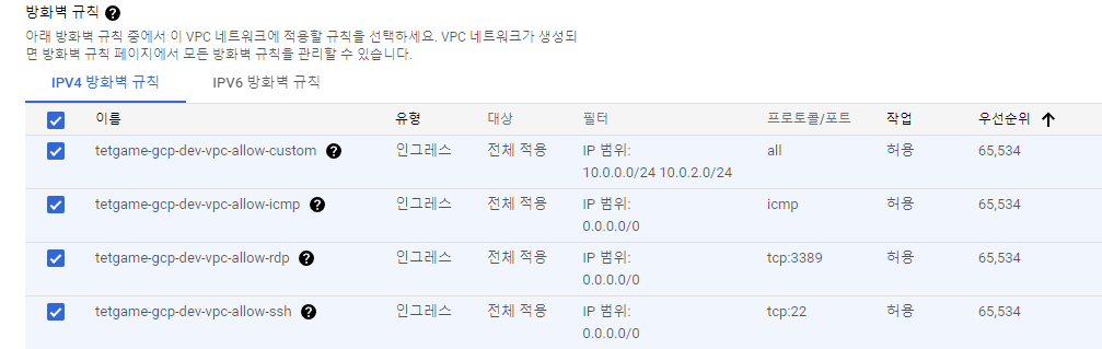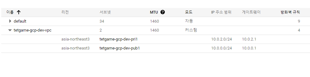 tetgame-gcp-dev-vpc 이름만 입력 합니다.!!