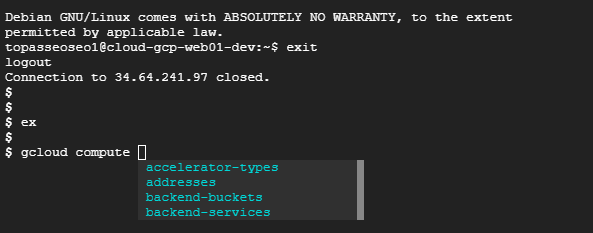 gcloud compute ssh cloud-gcp-web01-dev --zone $ZONE