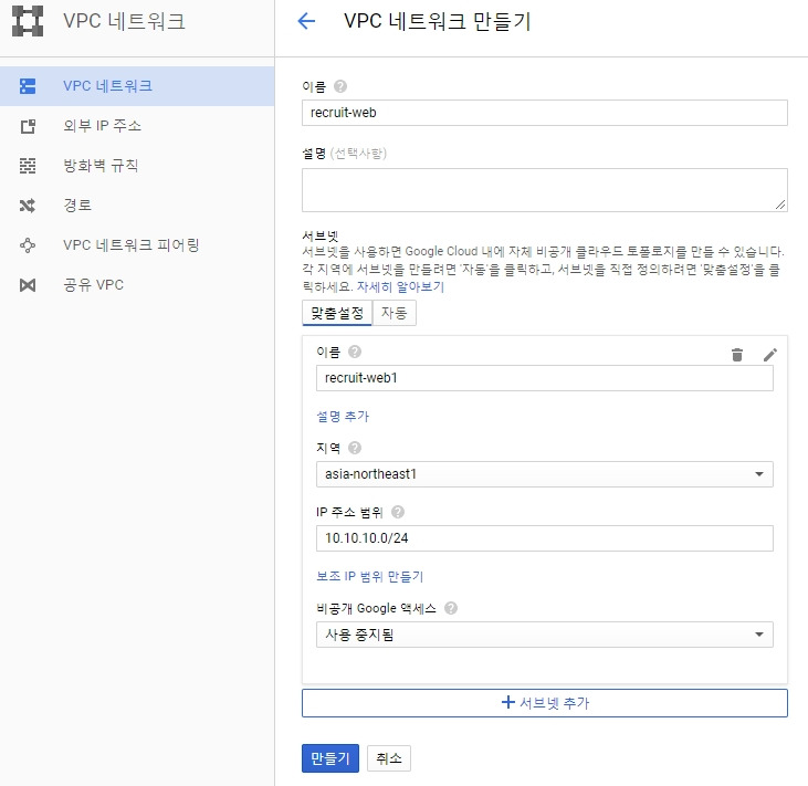 네트워크 1개 만들기,VM생성하기