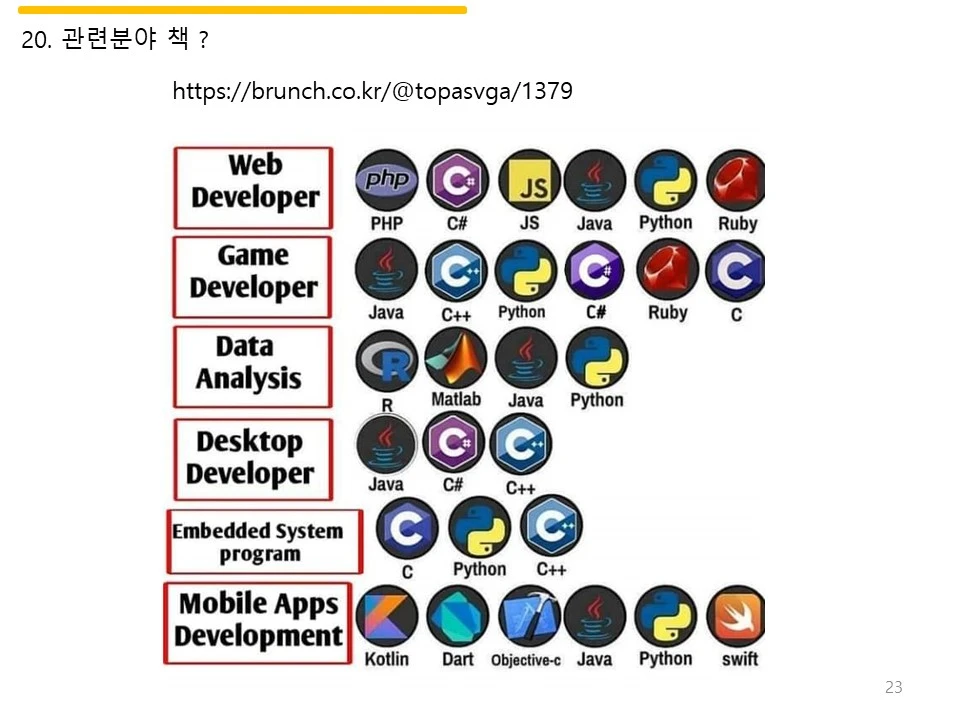 <1> 본인이 하고 싶은 분야를 정하고 시작하세요. <2> 프런트엔드 개발자 (웹 개발자)? <3> 모바일 앱 개발자? <4> 백엔드 개발자? <5> 서버 운영과 DevOps 엔지니어? <6> 데이터 분석 전문가? <7> 게임과