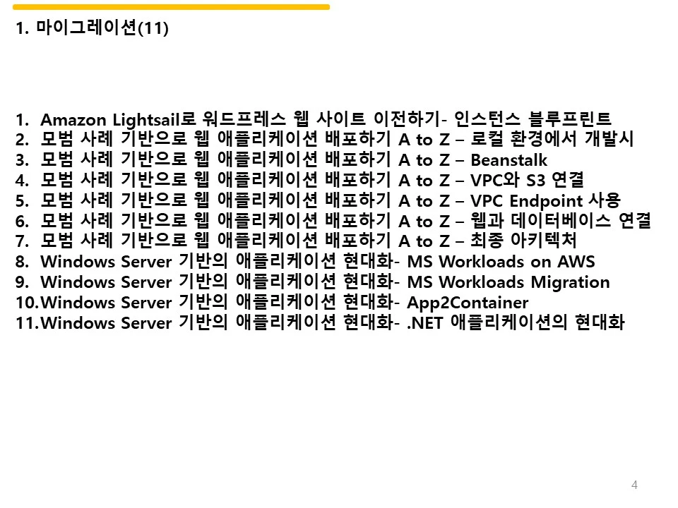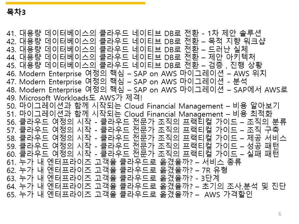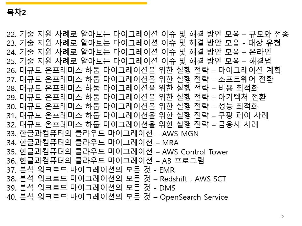AWS마이그레이션 기초부터, 전문적인 내용, 지원 프로그램까지 소개된다.