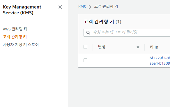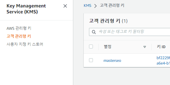 해당 리전으로 이동 > KMS로 이동 >고객 관리형키가 만들어져 있다.