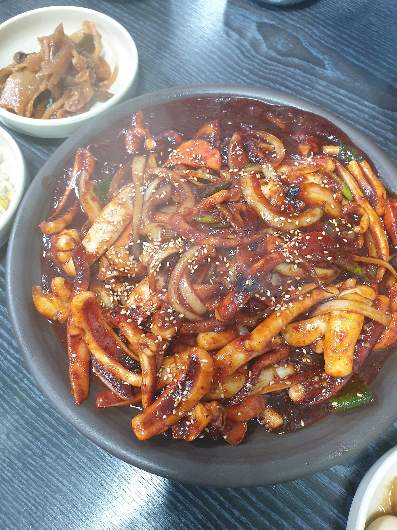 성수 똑도시장.미정이네.오징어 보통맵기로.맛나다.