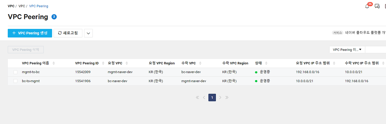 Peering을 2개 만들어야 한다.