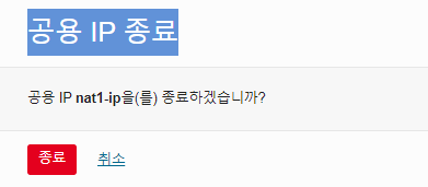 가상서버 자원은 삭제해야 네트워크가 삭제된다.
