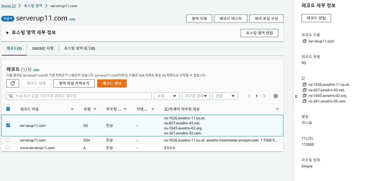 AWS의 경우 디폴트 값은 172800(2일이다). 최소 2일 전에 NS TTL을 줄여 놓자. 시간은 60초~172800(2일) 가능하다.