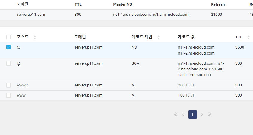 네이버 클라우드에서 A레코더 확인