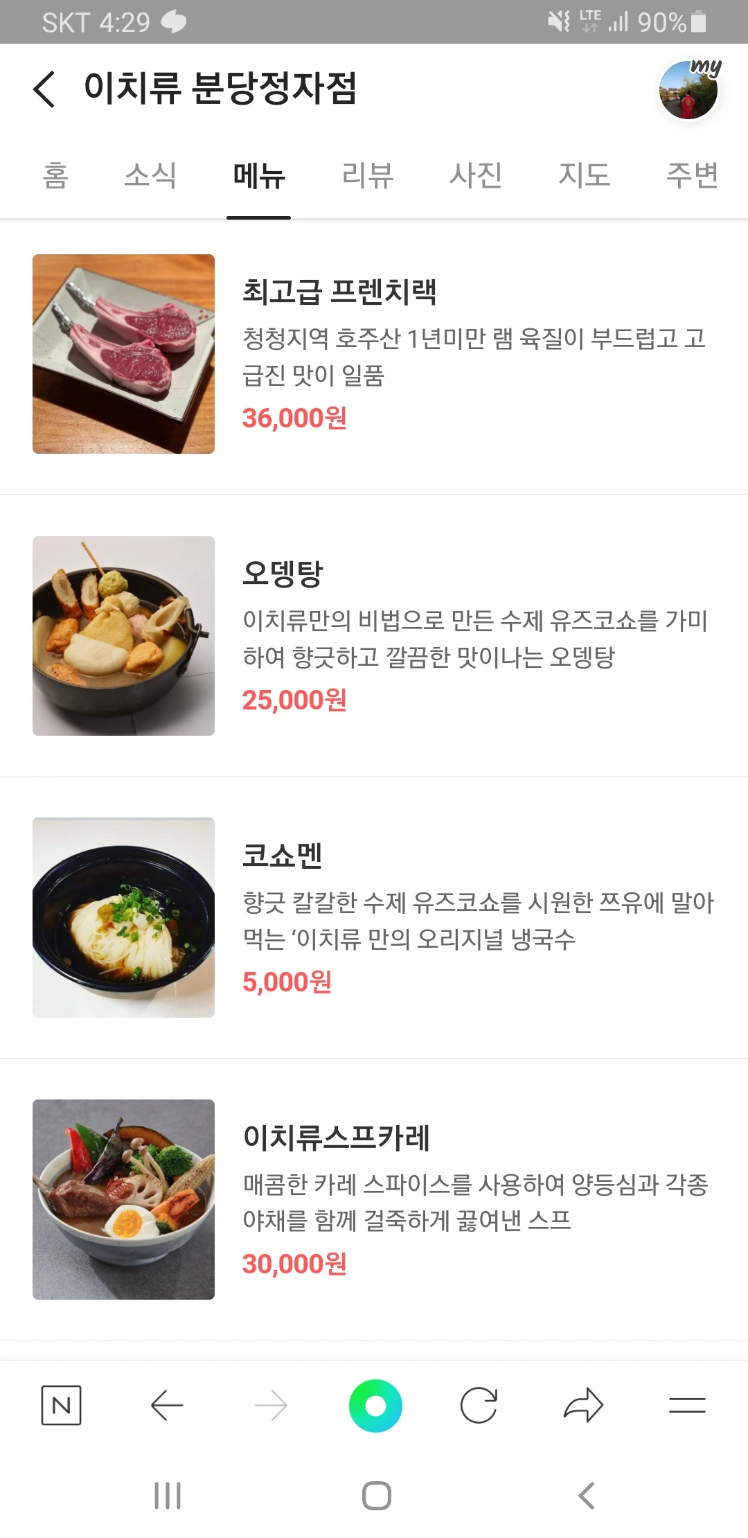 정자동 양고기 맛집 이치류.바형 테이블.2~3명