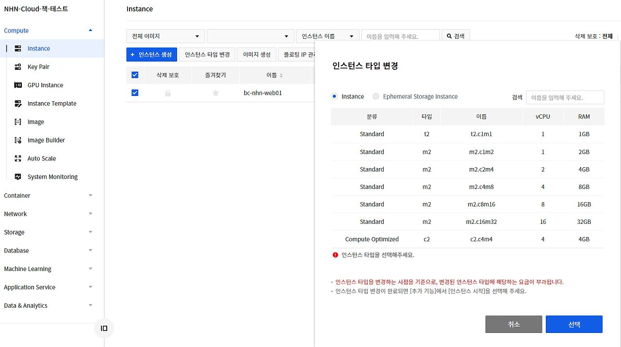 인스턴스 타입 변경