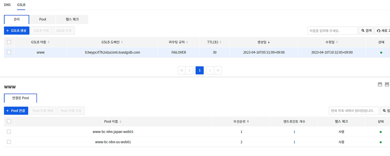 NHN GSLB는 별도로 설정하고, DNS에서 CNAME으로만 연결해주면 된다.