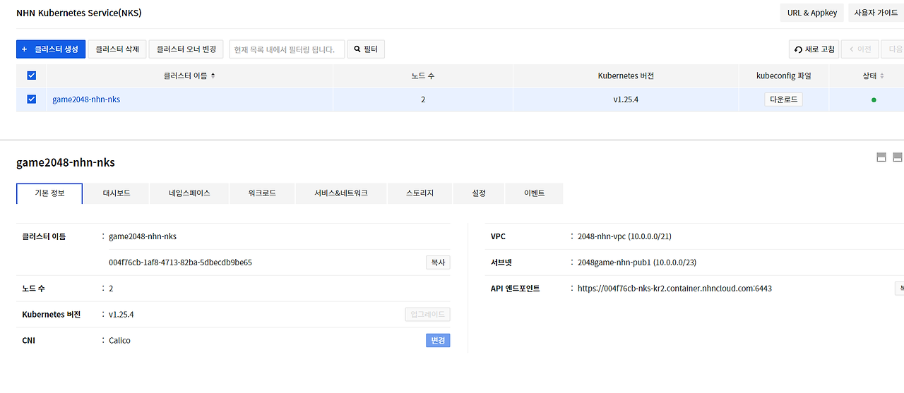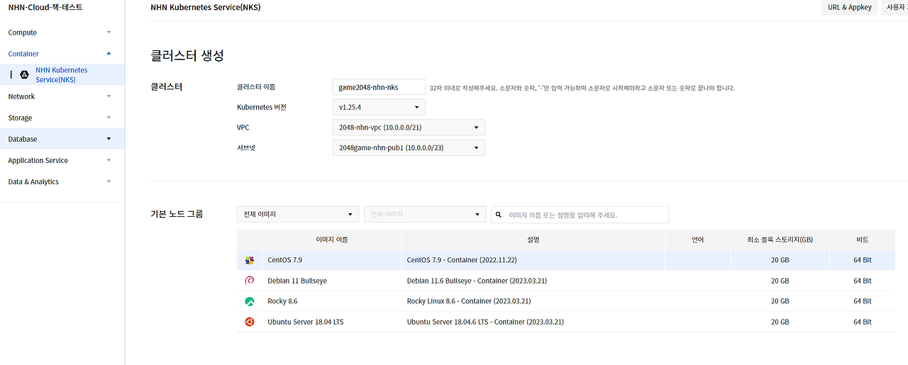 Container > NHN Kubernests Service(NKS) > 클러스터 생성