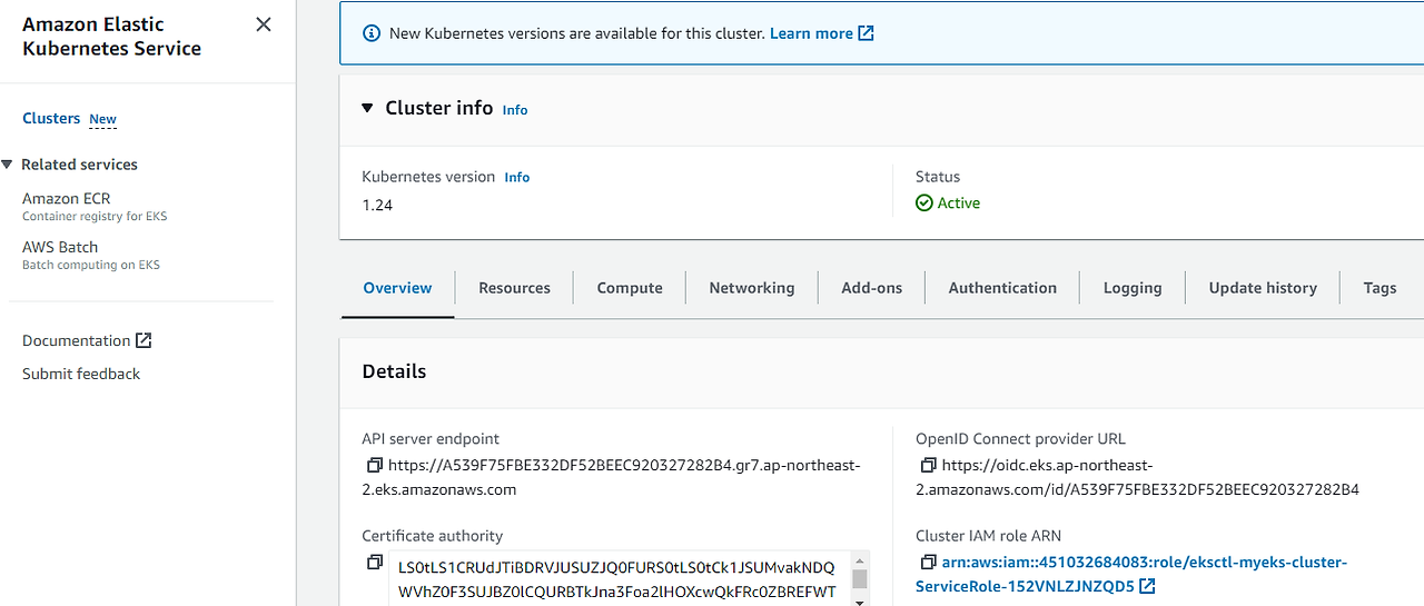 현재 사용가능한 Amazon EKS Kubernetes versions 확인은 ?
