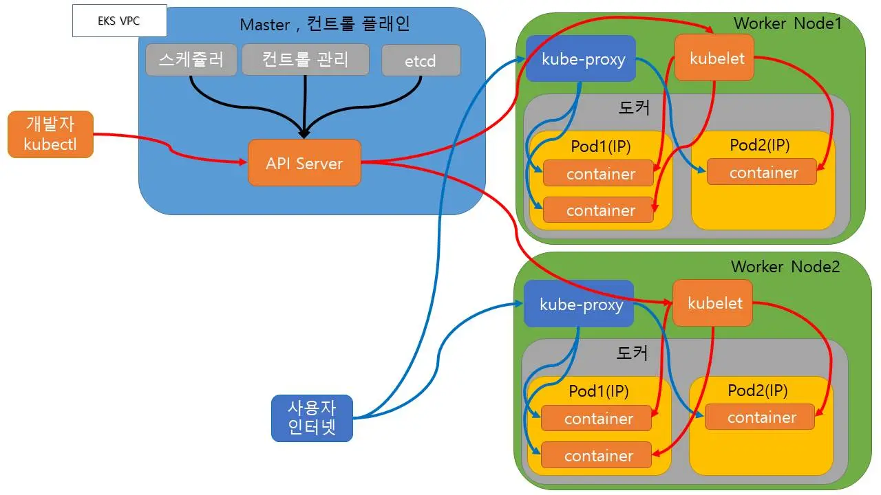 // 제어부에서 워커노드에 명령을 내릴때 고객 VPC의 ENI를 통해 Kubelet을 통해 수행한다.