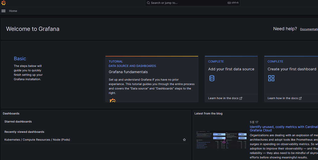 수집 정보가 node에 저장되면, 가시화는 그라파나를 사용한다.