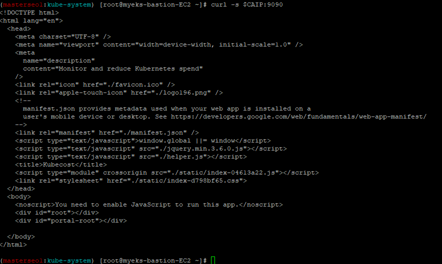 # kubecost-cost-analyzer 파드 IP변수 지정 및 접속 확인