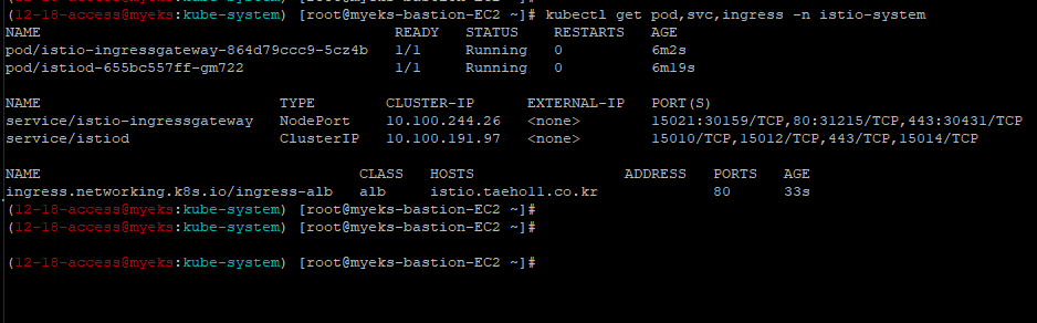 아래 Istio 실습 전 사전 준비 사항 : AWS LoadBalancer Controller, ExternanDNS