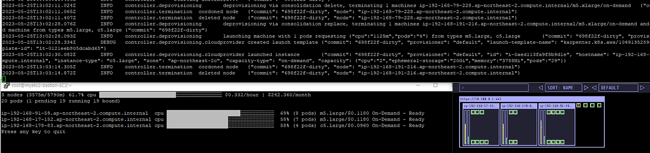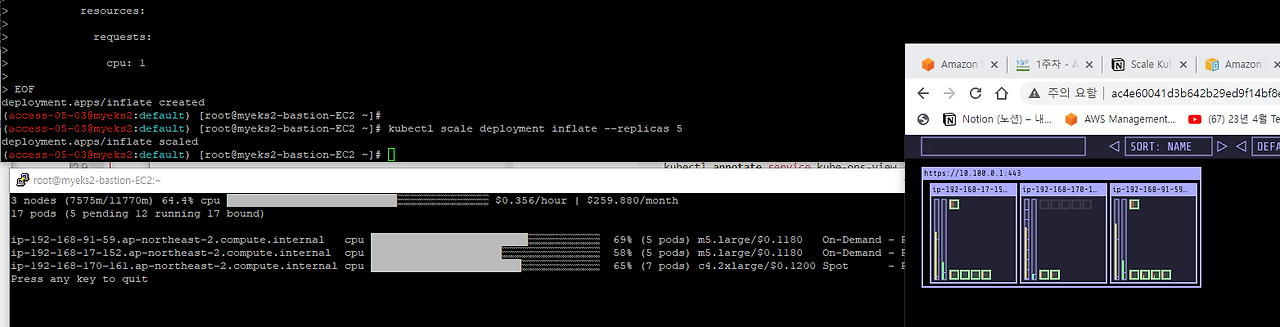 Pod에 적합한 인스턴스 중 가장 저렴한 인스턴스로 증설 됩니다.