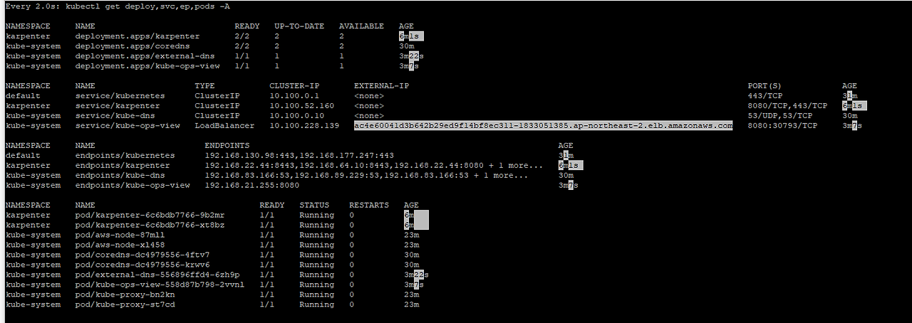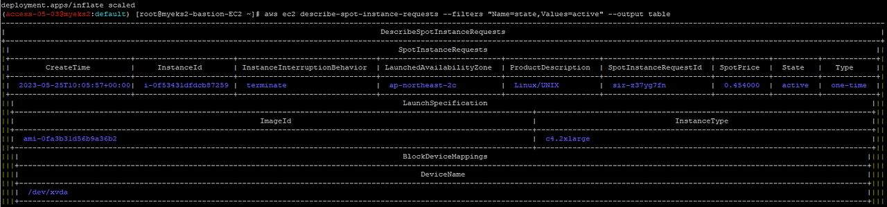 ip-192-168-165-220.ap-northeast-2.compute.internal Ready <none> 2m37s v1.24.13-eks-0a21954 spot c5a.2xlarge