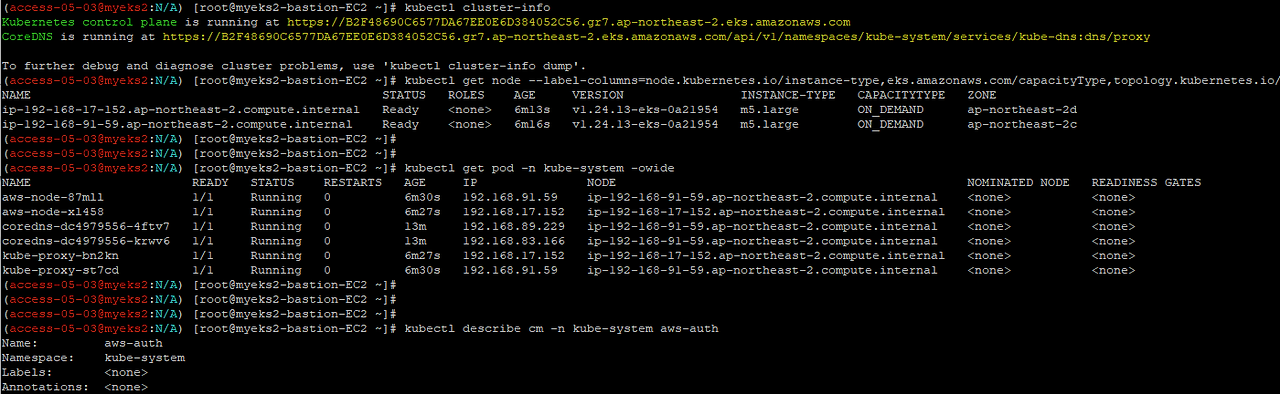 ip-192-168-75-253.ap-northeast-2.compute.internal Ready <none> 13m v1.24.13-eks-0a21954 ON_DEMAND m5.large