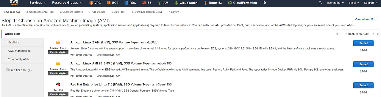 명령어 서버는 EC2서버중 Amazon Linux 나 RedHat서버로 만든다.