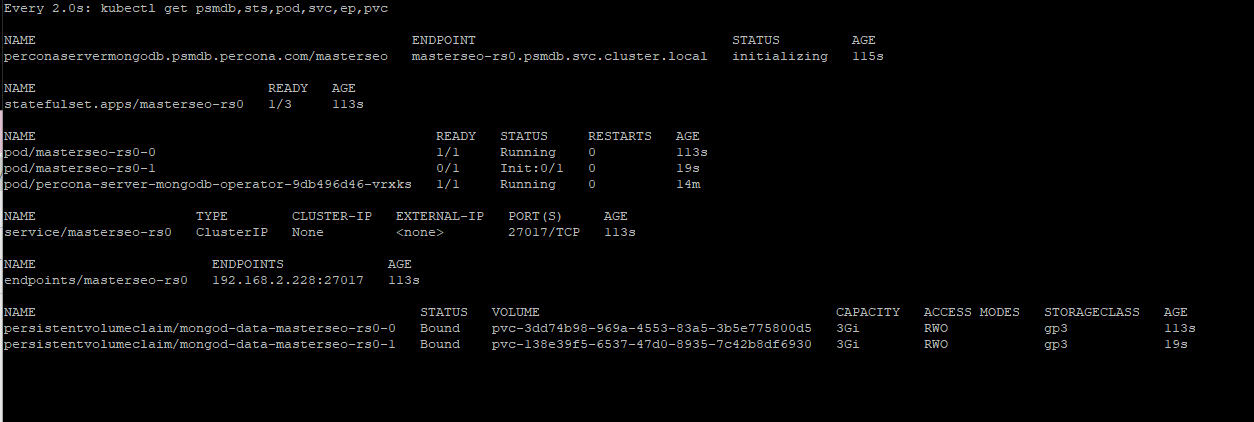 kubectl logs -l name=percona-server-mongodb-operator -f