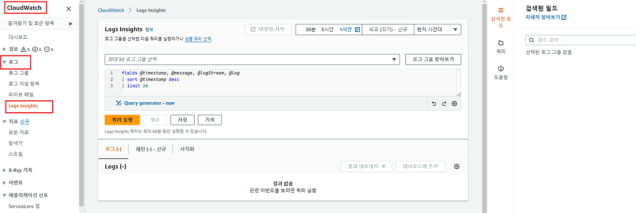 일반 SQL 문이 아닌 Cloudwatch에서 제공하는 별도 쿼리문 사용해야 해서 학습이 필요하다.