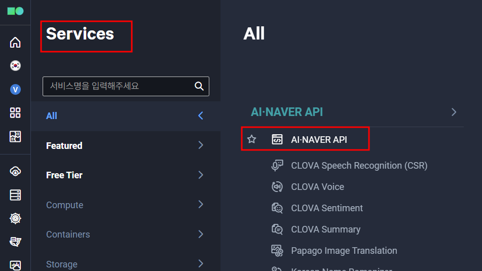 네이버 AI 서비스를 API로 사용 할수 있도록 알려준다.