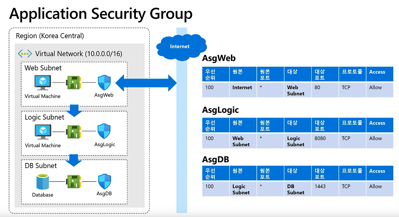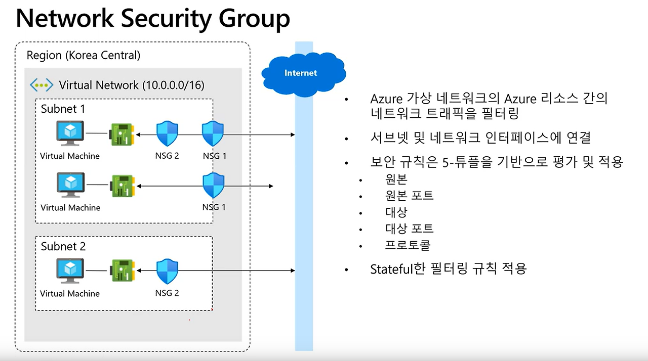 Network Security Group으로는 소스를 웹서브넷등 사용 불가함.