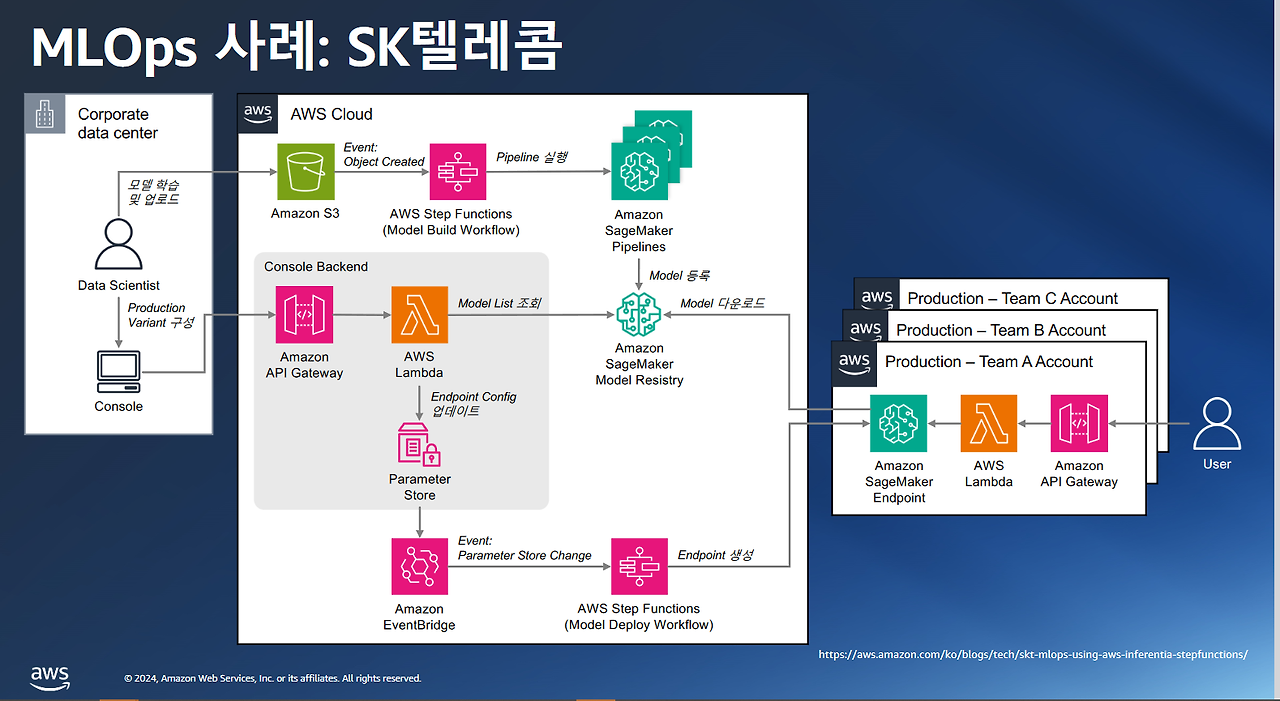 온프라미스 데이터 센터에서 학습한 모델---- AWS S3에 업로드 --- Step Function -- SageMaker -- AWS Infrerentia에서 사용할 수 있도록 AWS Neuron SDK를 통해 컴파일된다.