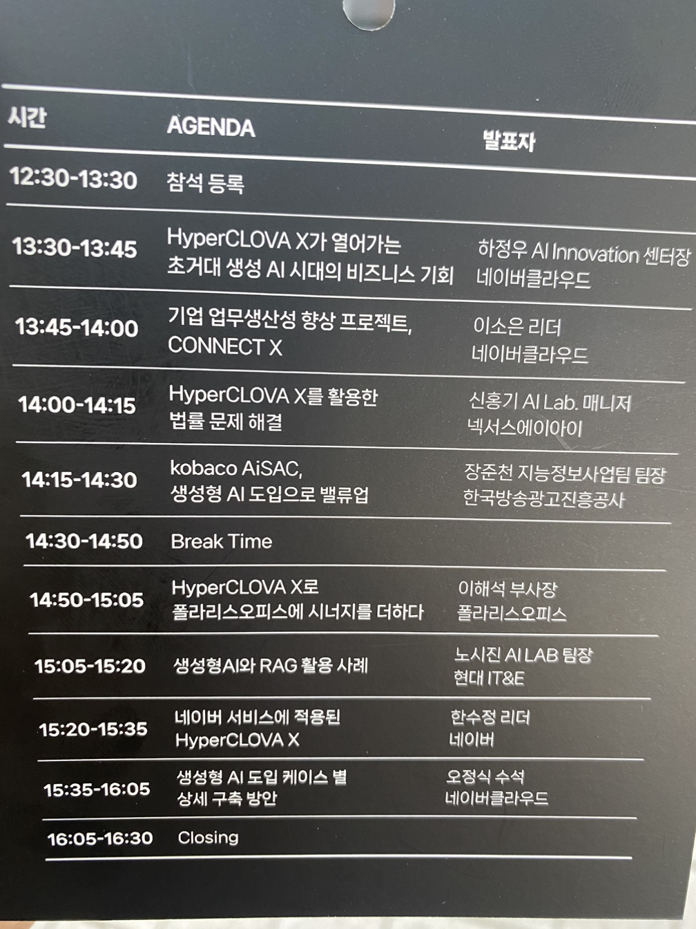 2024년 3월 | 'AI 개념' 알아보기 네이버 'AI 서비스' 알아보기 네이버 생성형 AI 서비스 '하이퍼클로바 X' 알아보기 이론, 실습 자료 6개가 제공된다. 1일 차 이론 , 1일 차 실습 2일 차 이론 , 2일 차 실