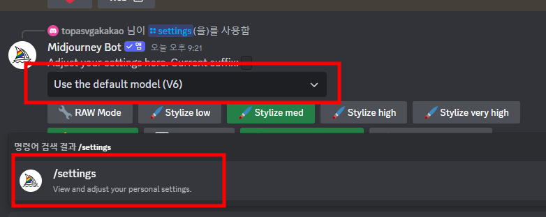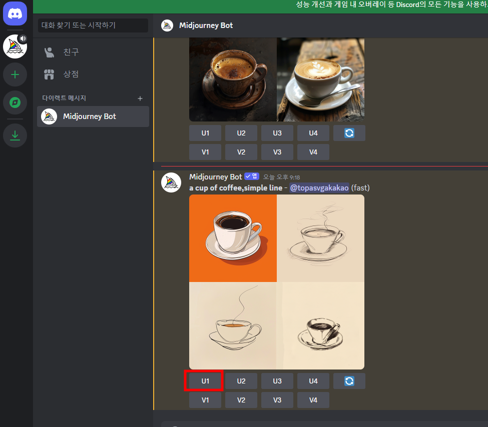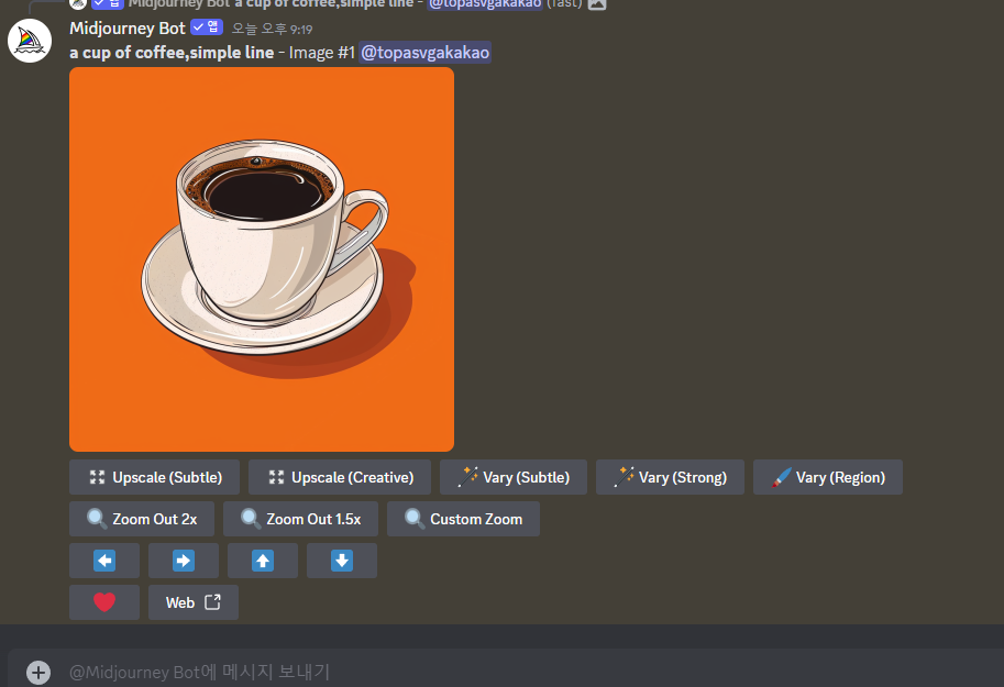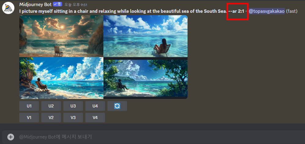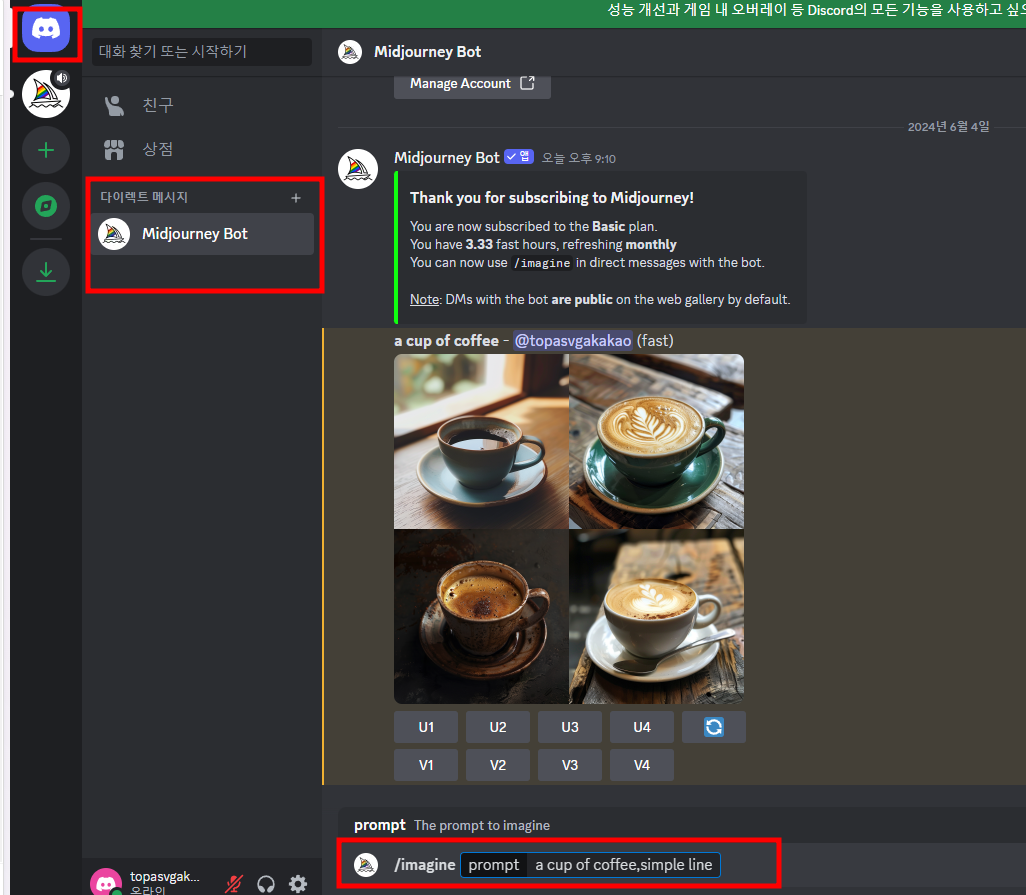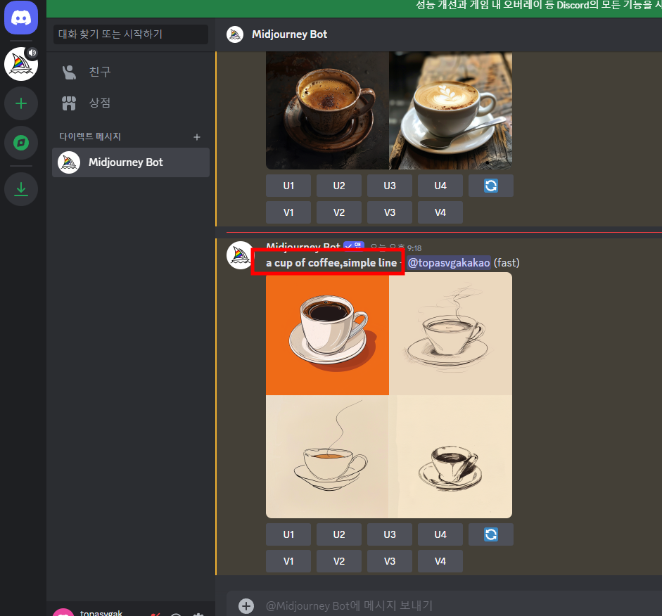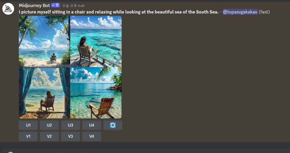 디렉트 메시지를 미드저니 봇에 보낸다.