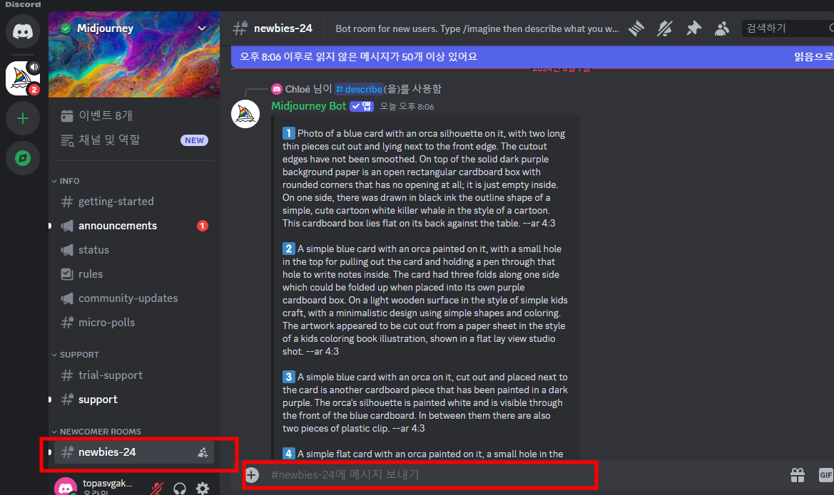 미드저니 설치 - 미드저니 사용은 유료 이다.