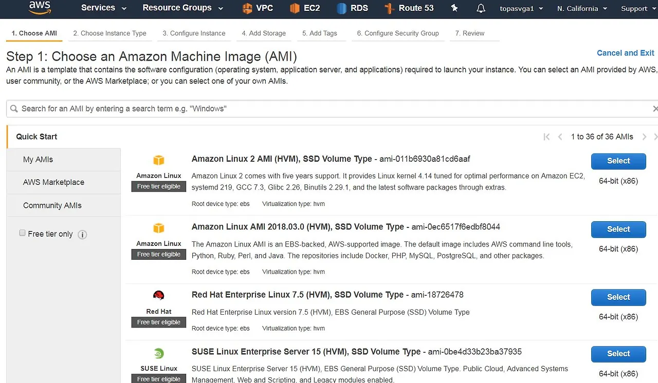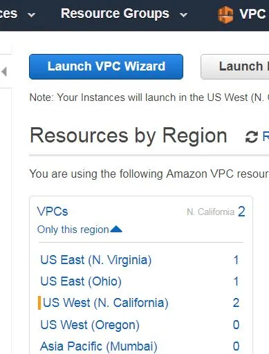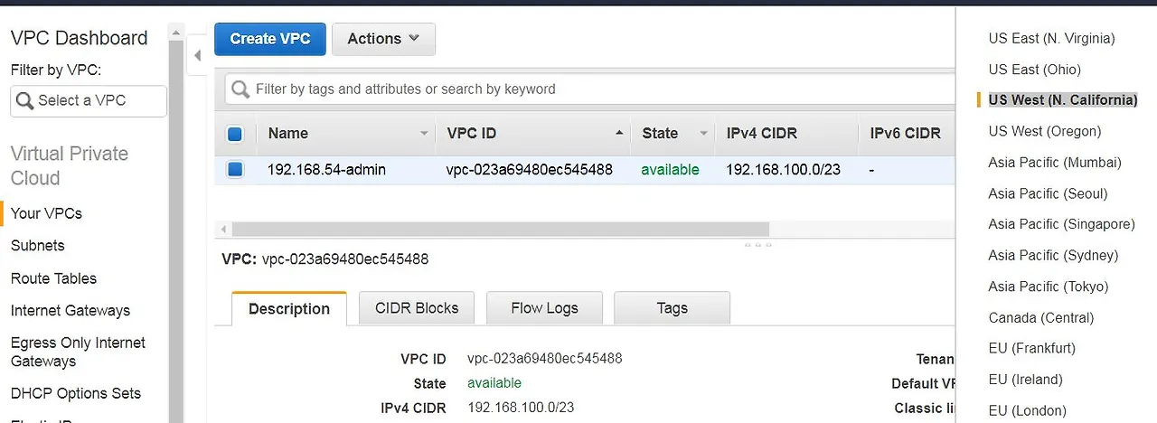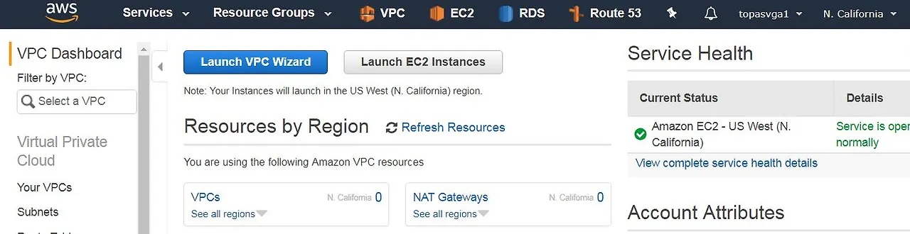 AWS에 로그인해서 US West (N. California) 로 지역을 선택한다.