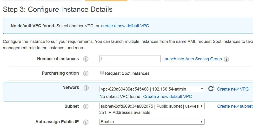 서비네팅할때 us-east-1a인지 1c인지 명확히 적어야 한다.