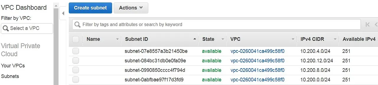 aws ec2 create-subnet --vpc-id vpc-0260041ca499c58f0 --availability-zone us-east-1a --cidr-block 10.200.0.0/24