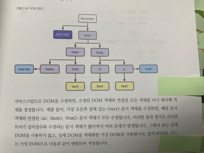 이때 웹 브라우저가 생성하는 객체를 문서 객채 모델(DOM, Document Object Model)이라고 합니다.