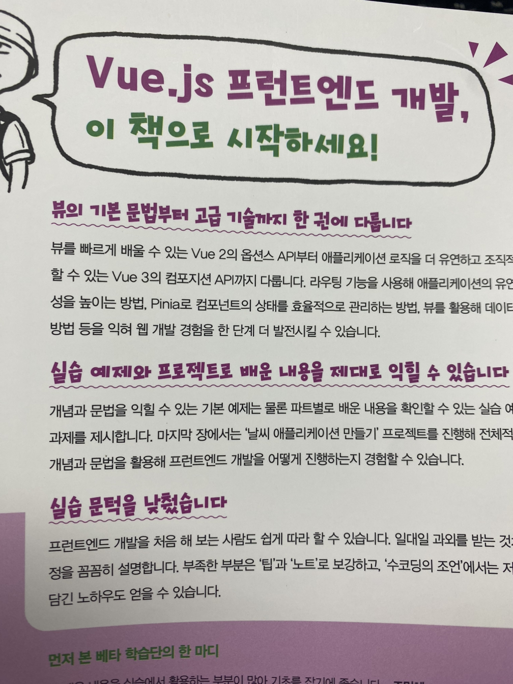 프런트엔드 개발인 뷰를 쉽고 빠르게 배울 수 있게 해주는 책이다.