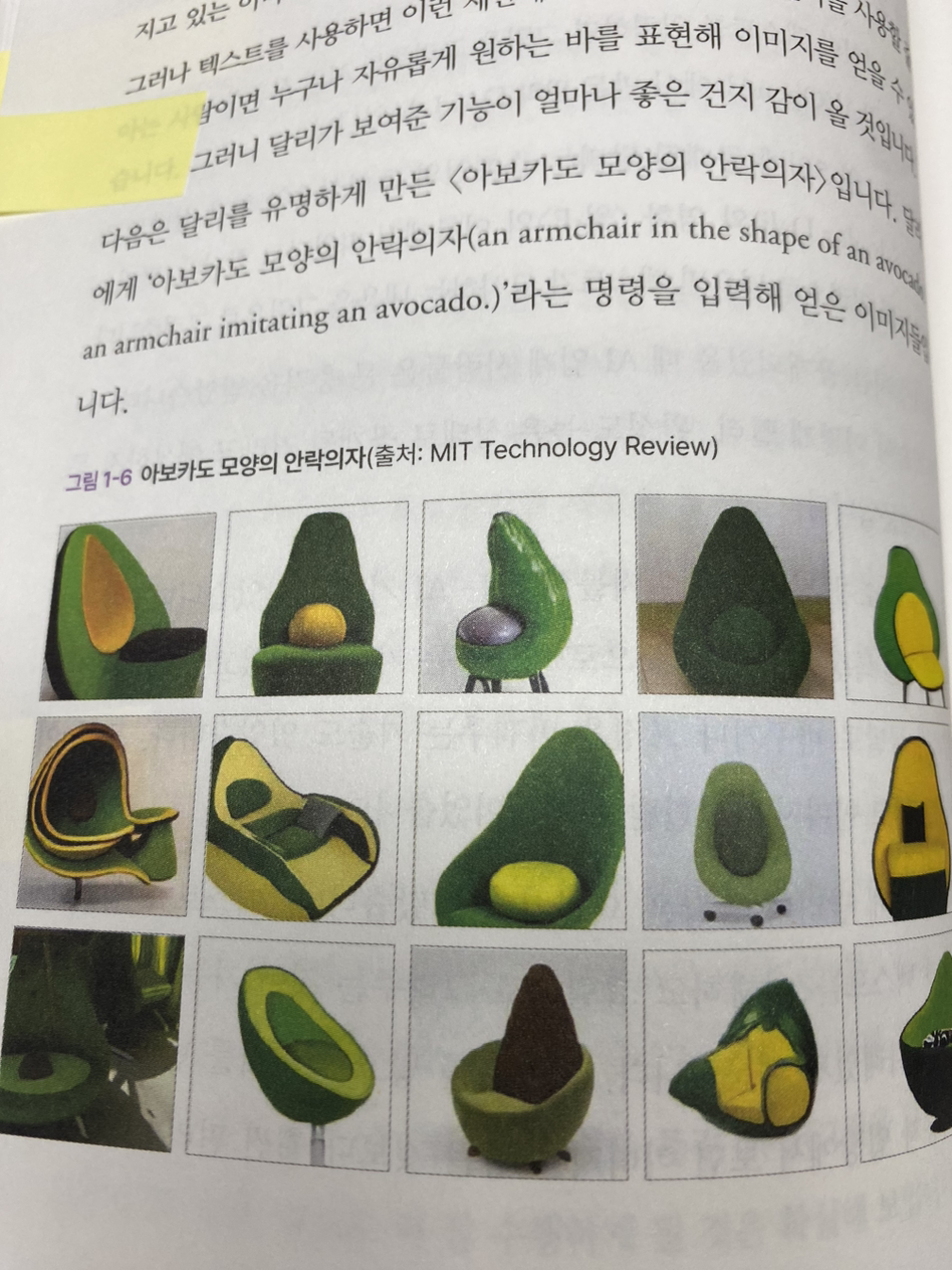 아보카도 모양의 안락의자라는 명령을 입력해 얻은 이미지들.