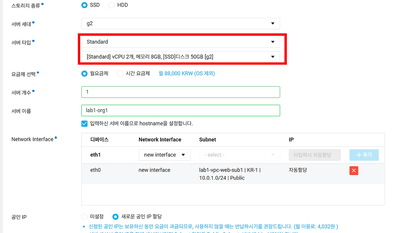 Standard vCPU 2개 , 메모리 8GB로 생성