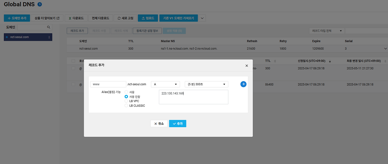 로드밸런서 공인 고정 IP 확인과 이름 확인