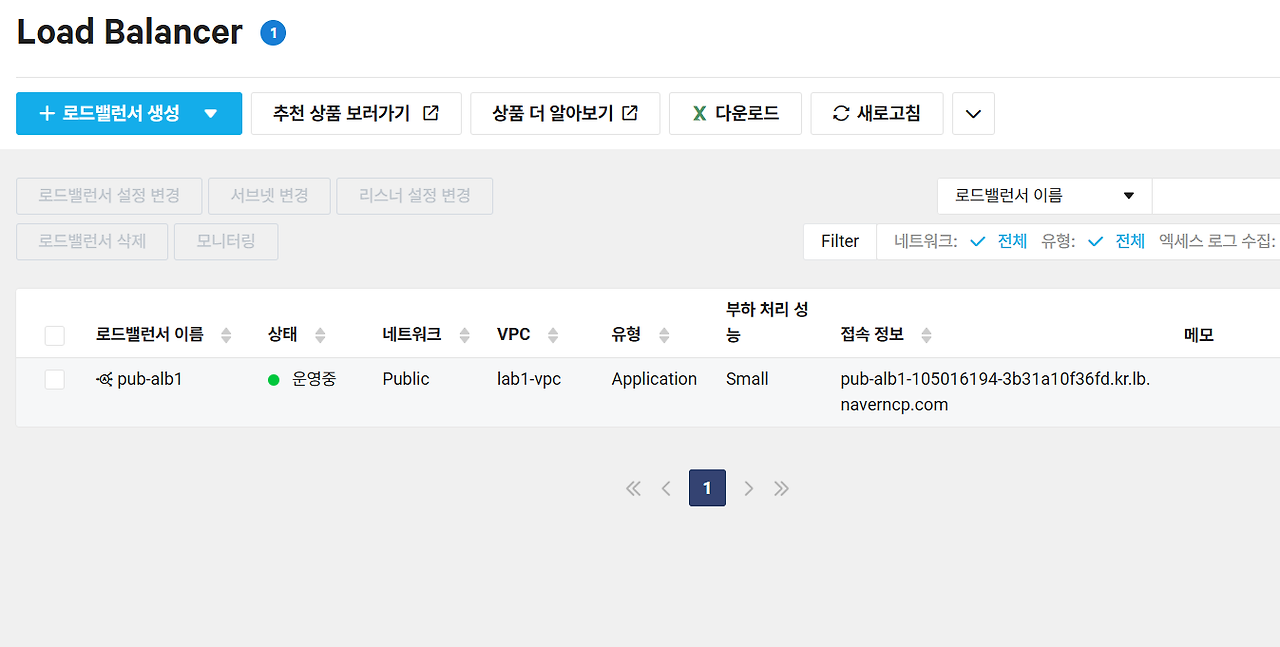 # 네이버 클라우드는 LB서브넷을 별도로 만들어야 한다.