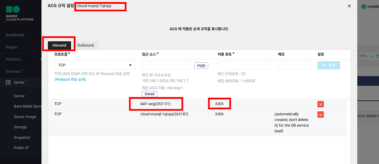 접근 소스는 lab1-acg , 3306