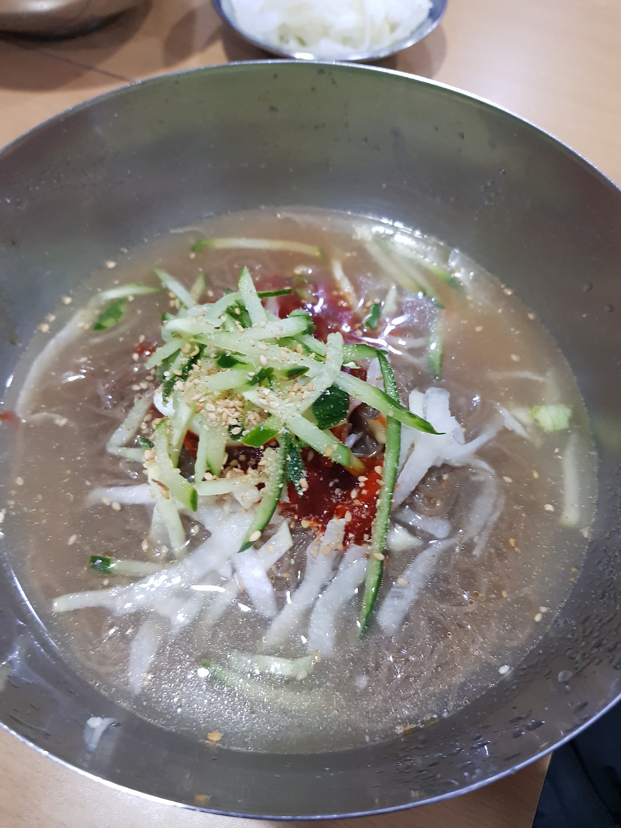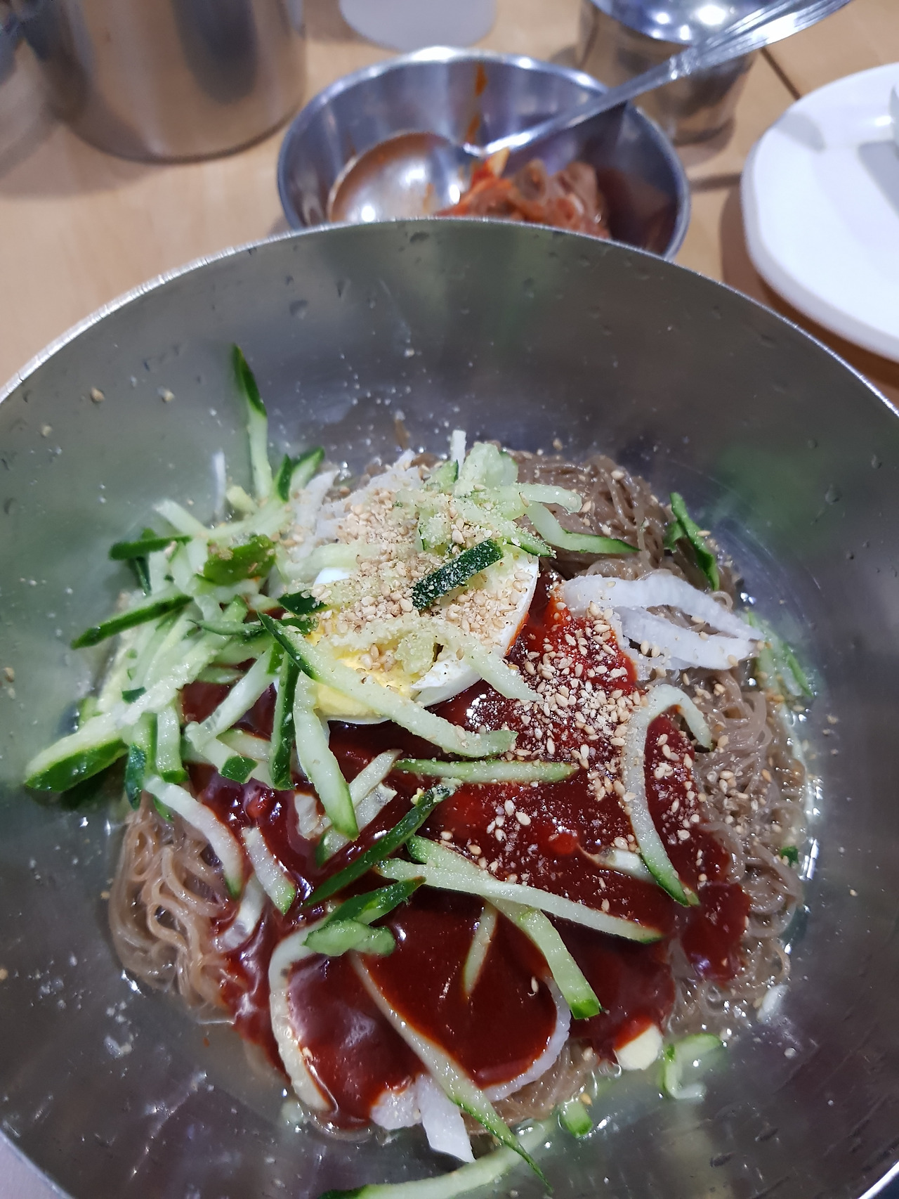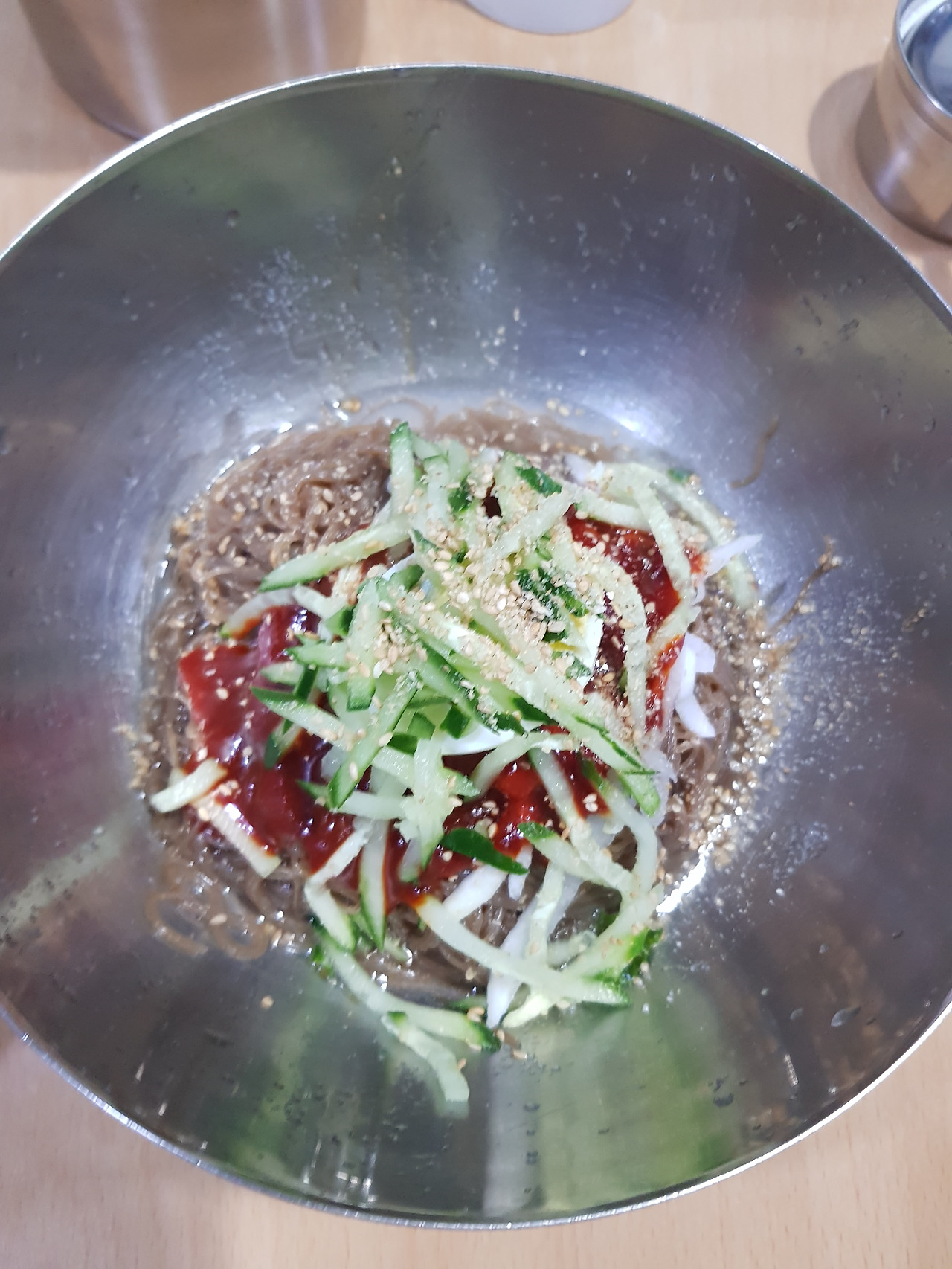 시킬때 안맵게 해주세요라고하세요. 좀 메워요. 만두와 같이 먹어요