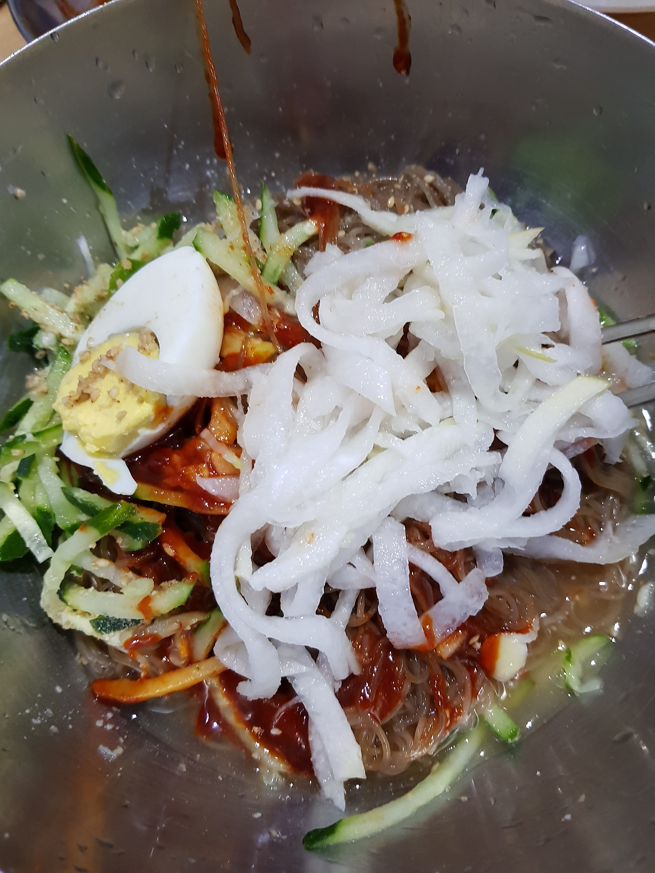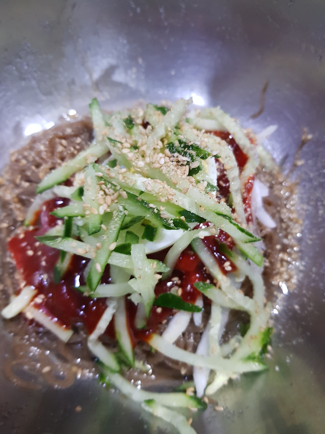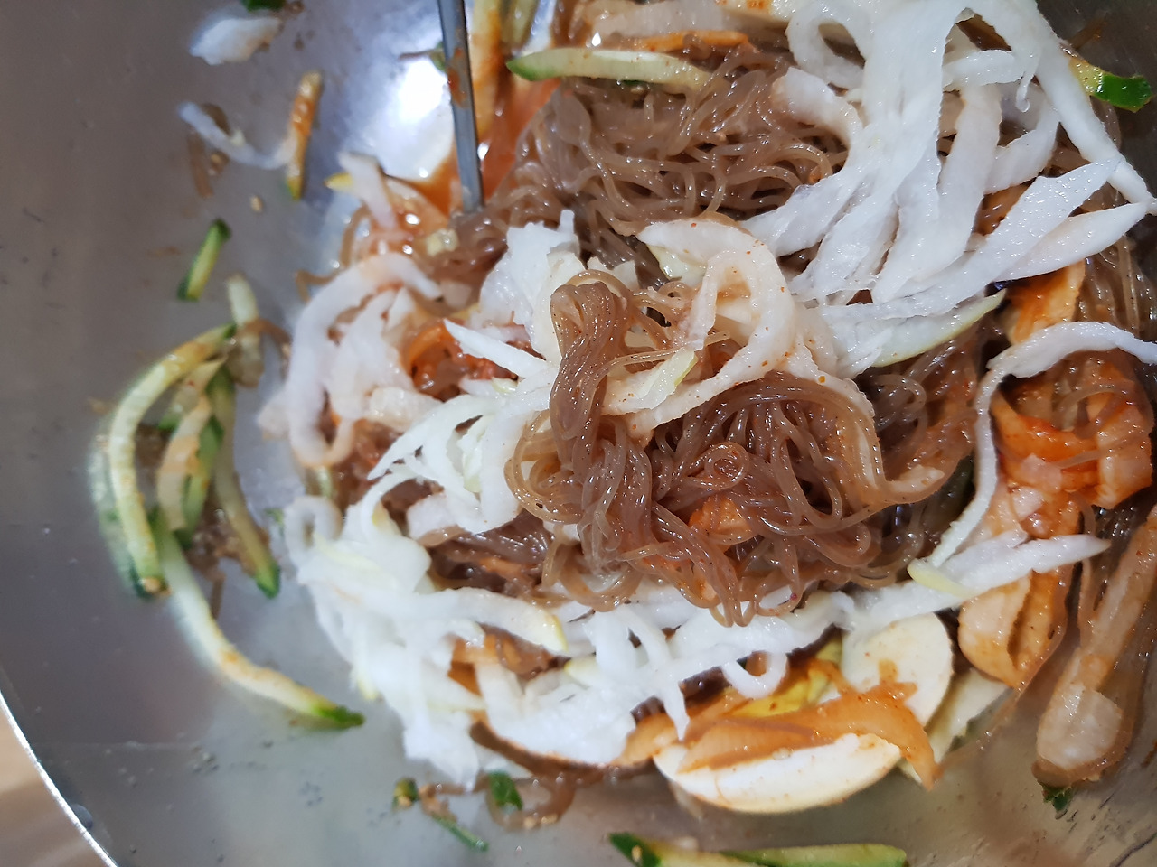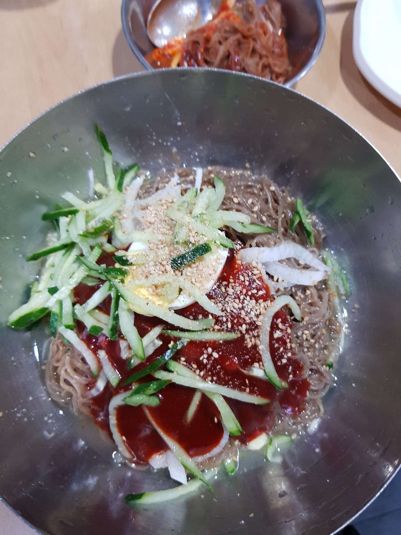 시킬때 안맵게 해주세요라고하세요. 좀 메워요. 만두와 같이 먹어요