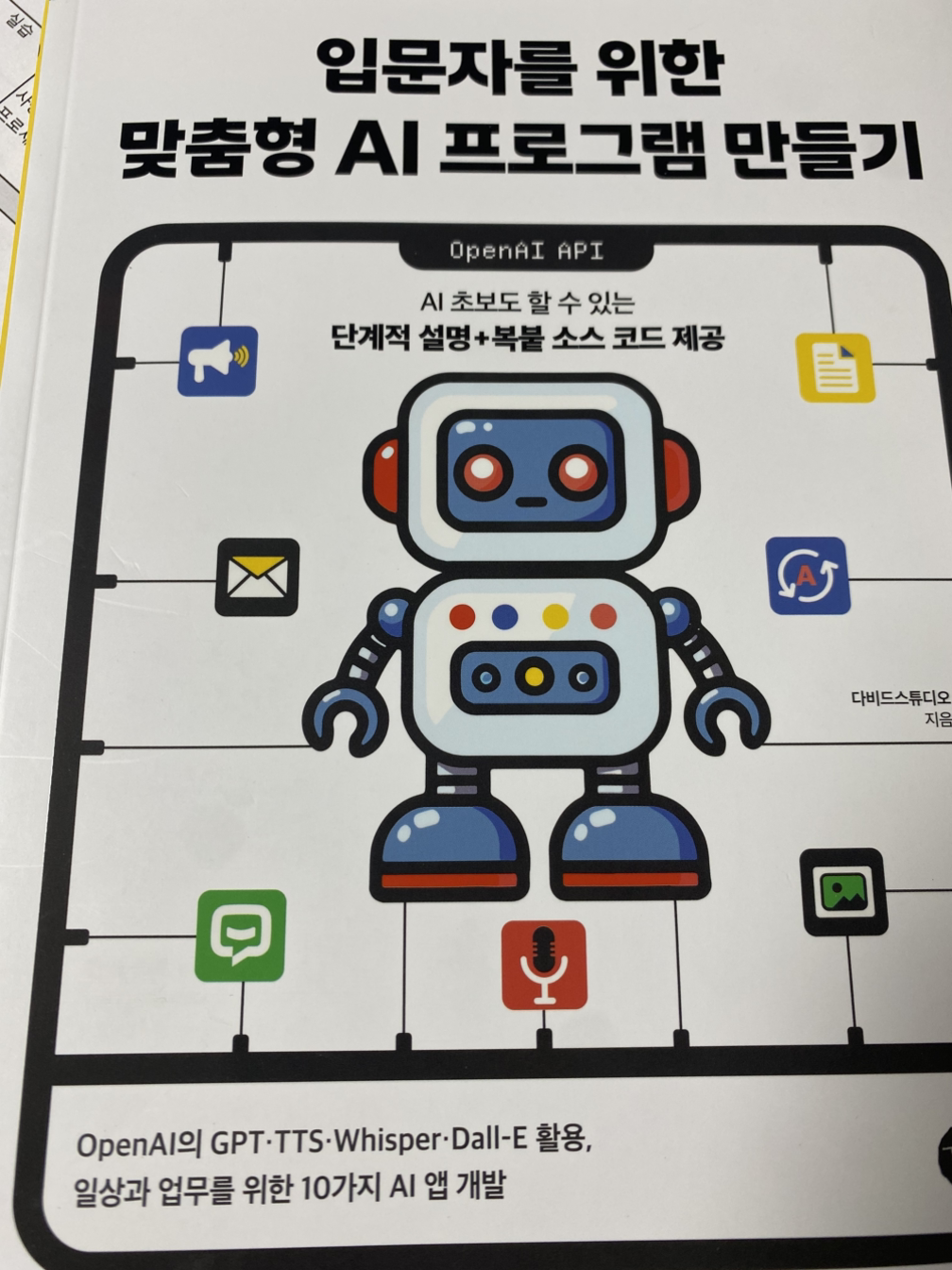 2024 | AI공부하시는 분에게 도움이 되길 바랍니다. 반복 학습으로 생성형 AI를 이해할수 있게 됩니다. AI 1탄-1. 챗GPT로 AI 시작하기 AI 2탄-1. 나만의 챗GPT 만들기-개발환경 AI 3탄-1. LLM기반 AI 앱 개발
