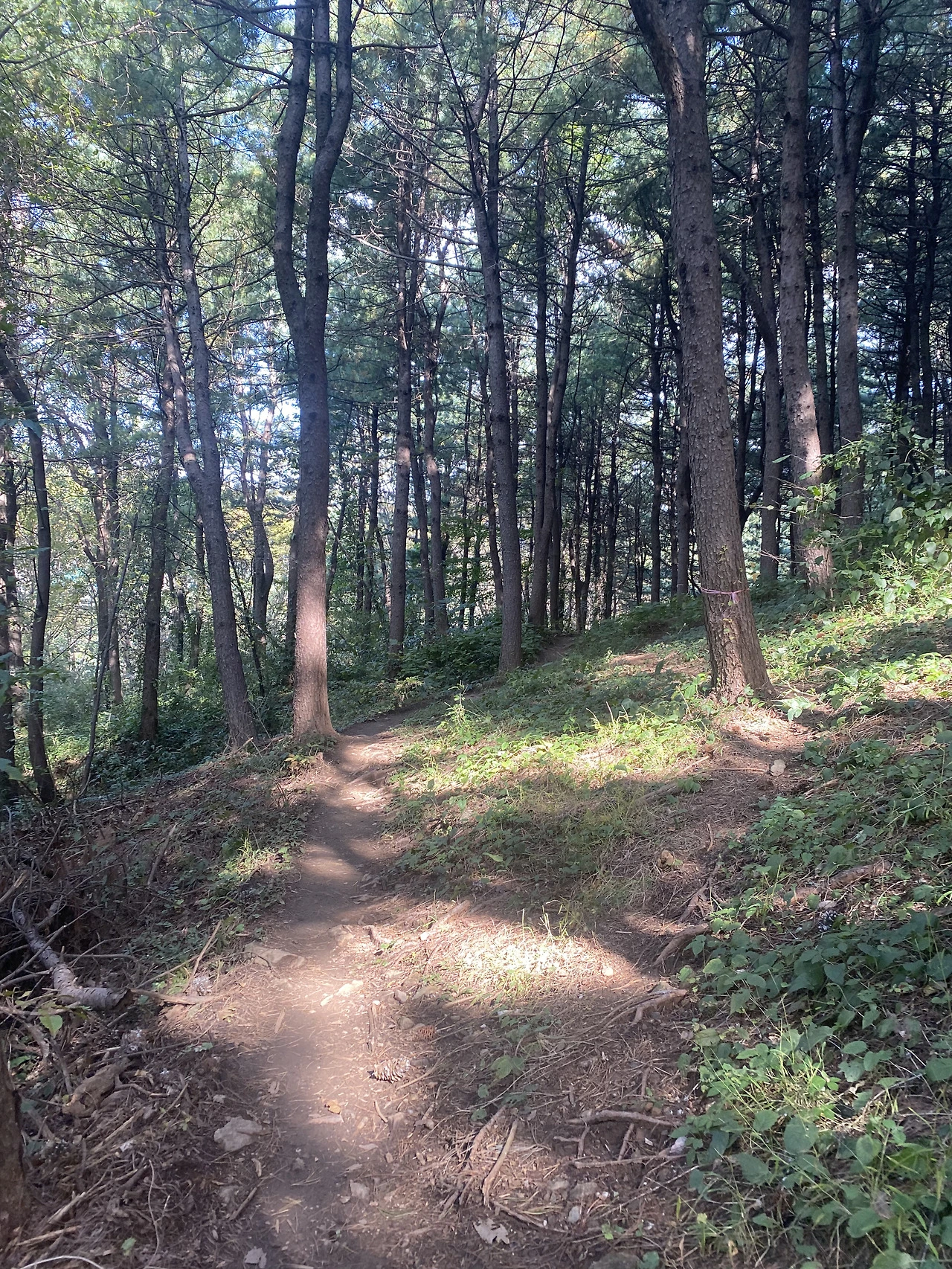 3. 2시간 평탄한길 걸어요. 원하시면 정상 200미터 올라가요. 경치가 좋아요.