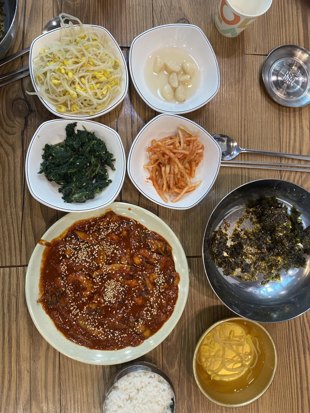 5. 지하철 1 정거장 타고 경복궁역 깁니다. 시장 가서 맛집 갑니다. 주꾸미 맛집 좋아요