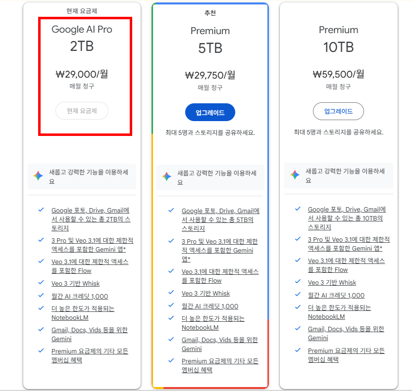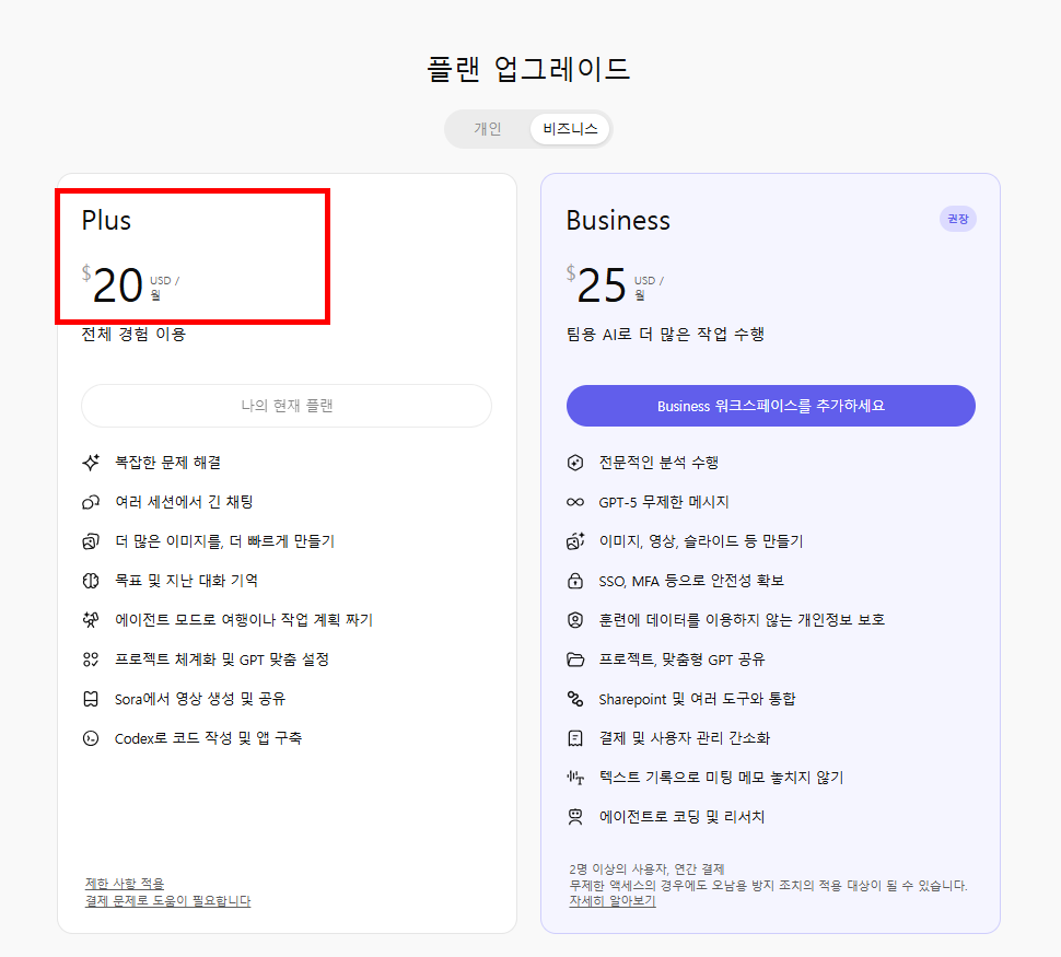 챗지피티도 2만 9천 원 , 가격은 제미나이와 같다.