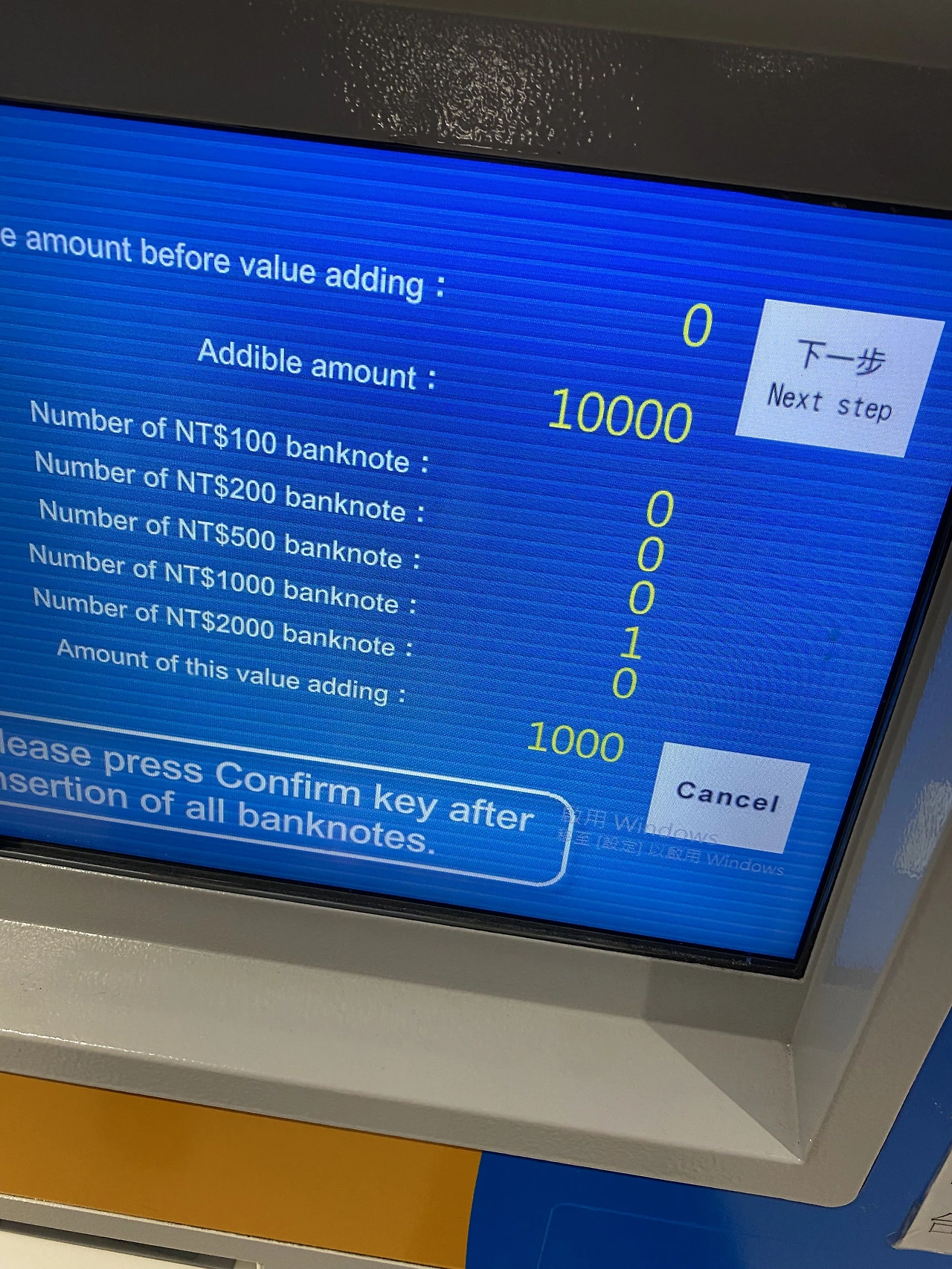 1,000위안. 5만 원 충전한다.