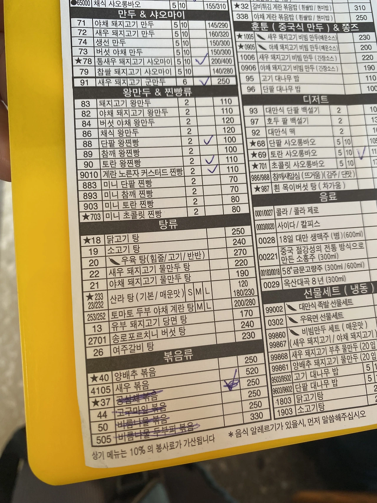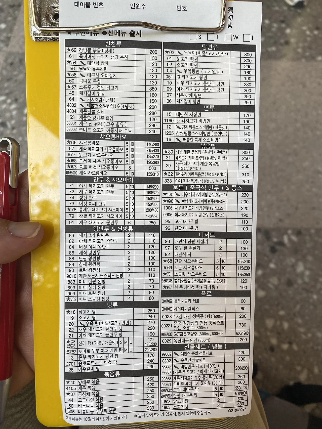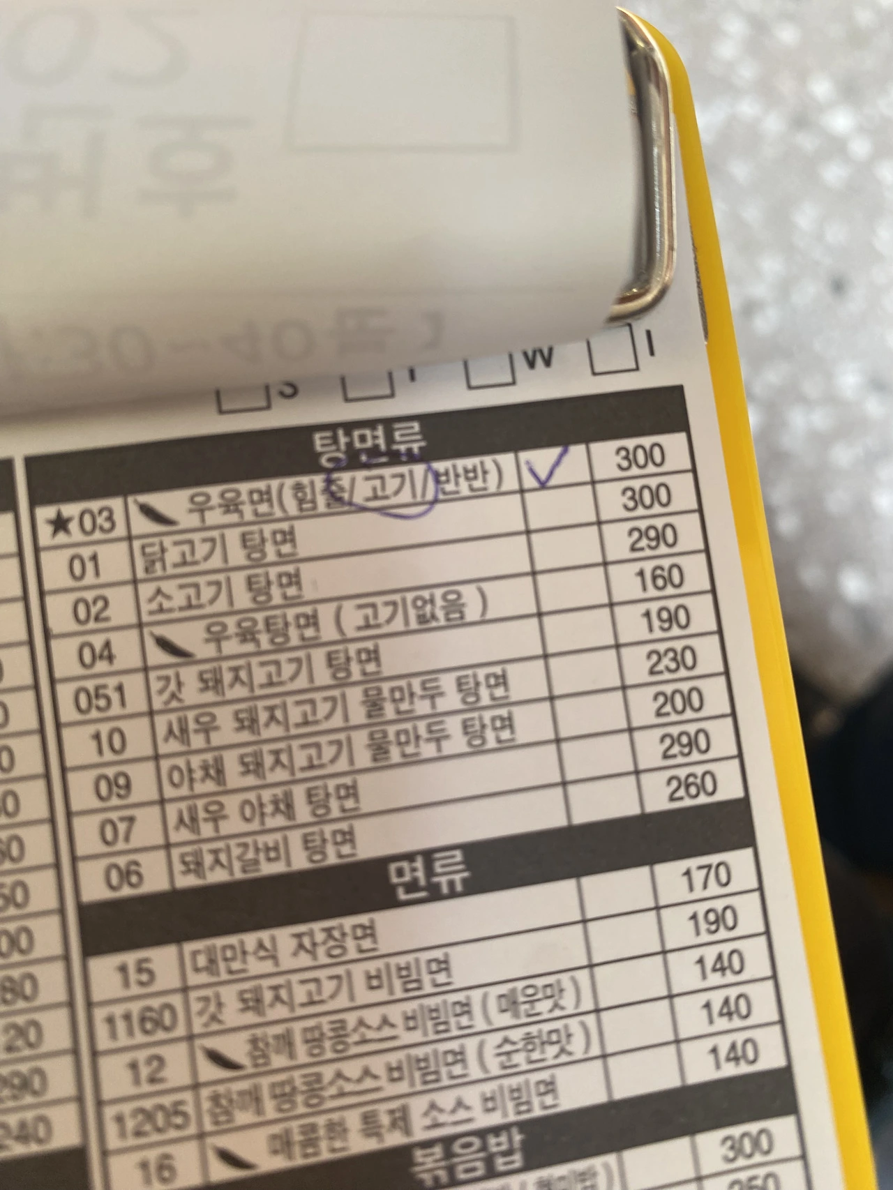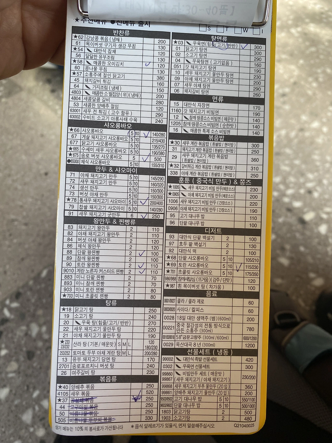 종업원에게 이야기하면 체크할수 있는 종이를 준다.